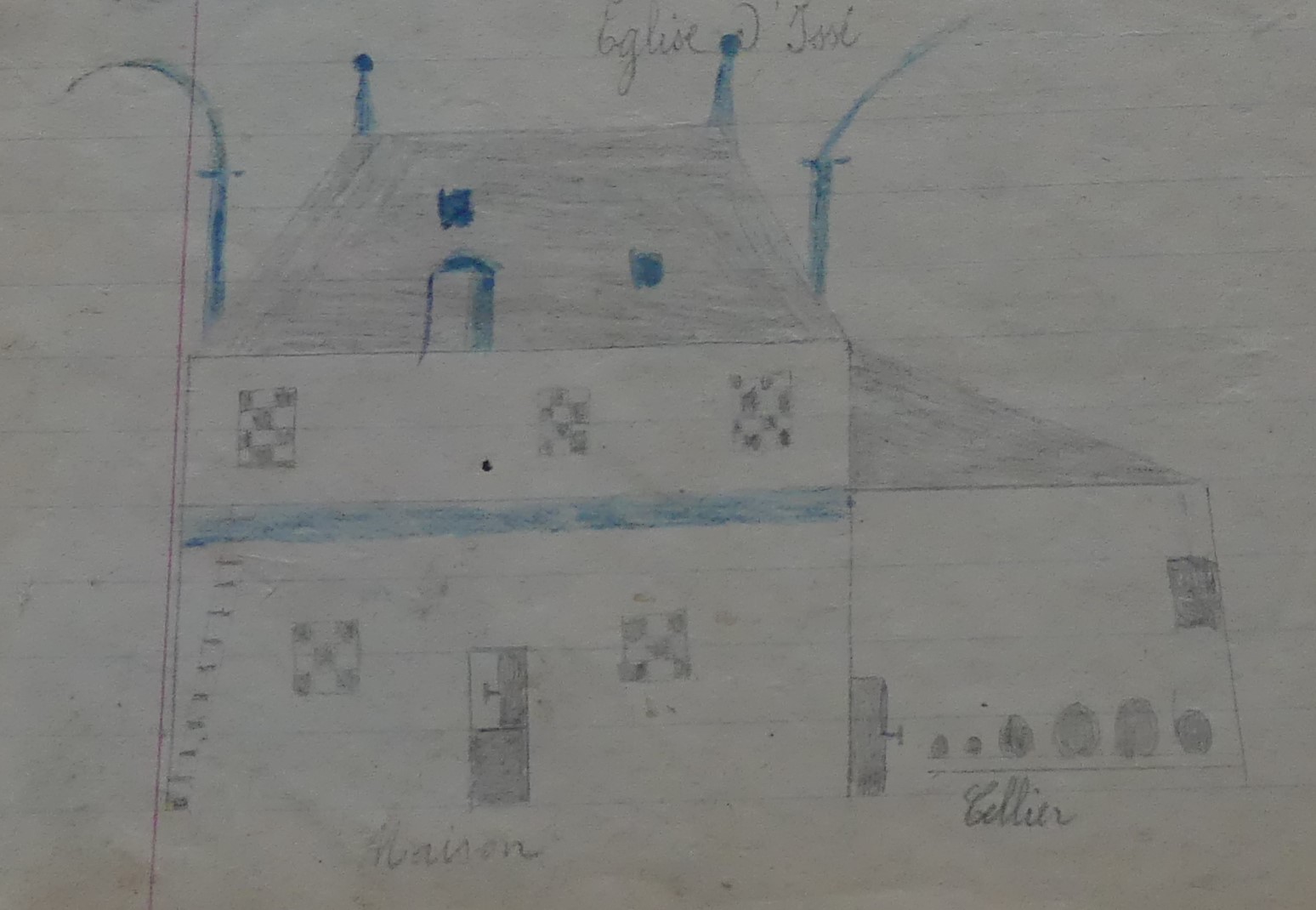Notre grand-oncle a dessiné cette maison sur un de ses cahiers, sans doute vers 1901 ou 1902 :
