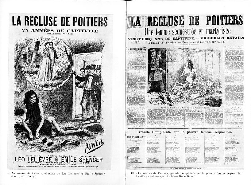- La séquestrée de Poitiers : Une femme a été séquestrée pendant 25 ans par son frère et sa mère, semble-t-il pour empêcher qu’elle se marie avec un homme venant d’une famille moins riche. La complainte copiée dans le cahier est la dernière de celles retranscrites sur ce site : http://sequestreedepoitiers.free.fr/Complaintes.htm