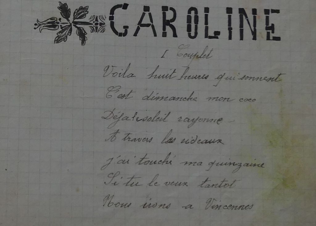 Je vais aujourd’hui te présenter une des chansons du cahier de notre grand-oncle Henri AUBIN (Les cahiers du grand-oncle Henri AUBIN).
