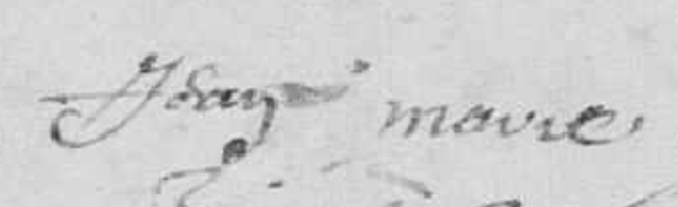Tu nous avais déjà présenté notre branche MARIE principale dans un de tes premiers articles (la branche MARIE). Je n’ai de mon côté rien de plus à t’apprendre. Je te joins une copie de la signature de Jean MARIE (notre ancêtre à la 9e génération) lors de son mariage le 11 février 1681 en l’église Saint-Pierre de Tinchebray, avec Marie DUBOSC. C’est la signature la plus ancienne de nos ancêtres MARIE que je connaisse. Tu peux consulter cet acte de mariage sur le site des archives départementales de l’Orne (vue 16 de ce registre).