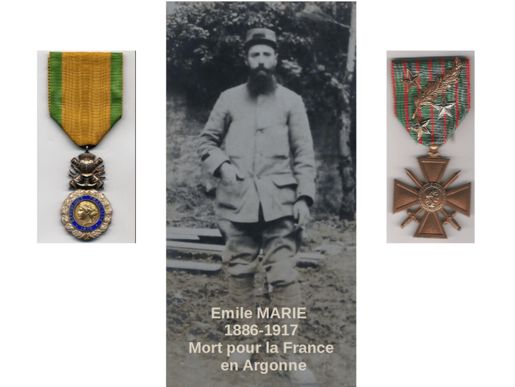 Émile MARIE est le frère ainé de notre grand-père Henri MARIE. Il est né le 27 juin 1886 à la Huardière sur la commune de Landisacq, dans la ferme de ses parents Victor MARIE et Maria VAUGEOIS. Émile est son prénom d’usage, mais ce n’était que son deuxième prénom à l’état civil, le premier étant Victor. Les documents officiels (actes de naissance et décès, fiche matricule,..) indiquent donc comme prénom Victor ou Victor Émile.