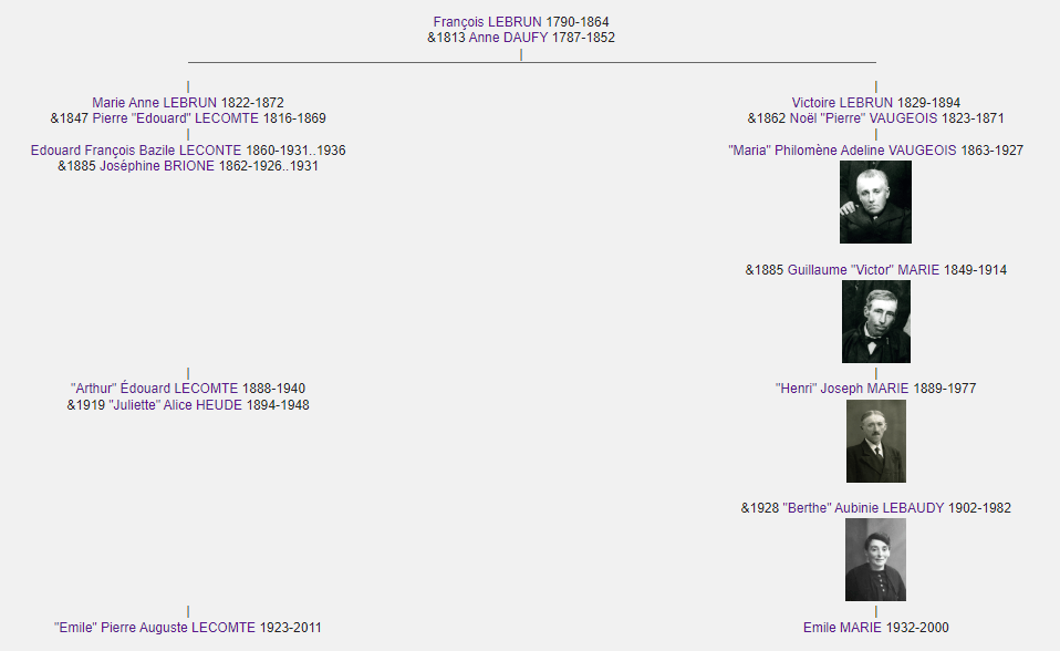 Lien familial entre Emile LECOMTE et notre oncle Emile MARIE
