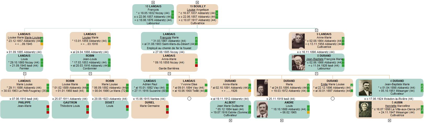 Anne-Marie LANDAIS est la mère de notre grand-père Jean-Baptiste DURAND, et l’épouse de notre arrière-grand-père nommé lui aussi Jean-Baptiste DURAND.