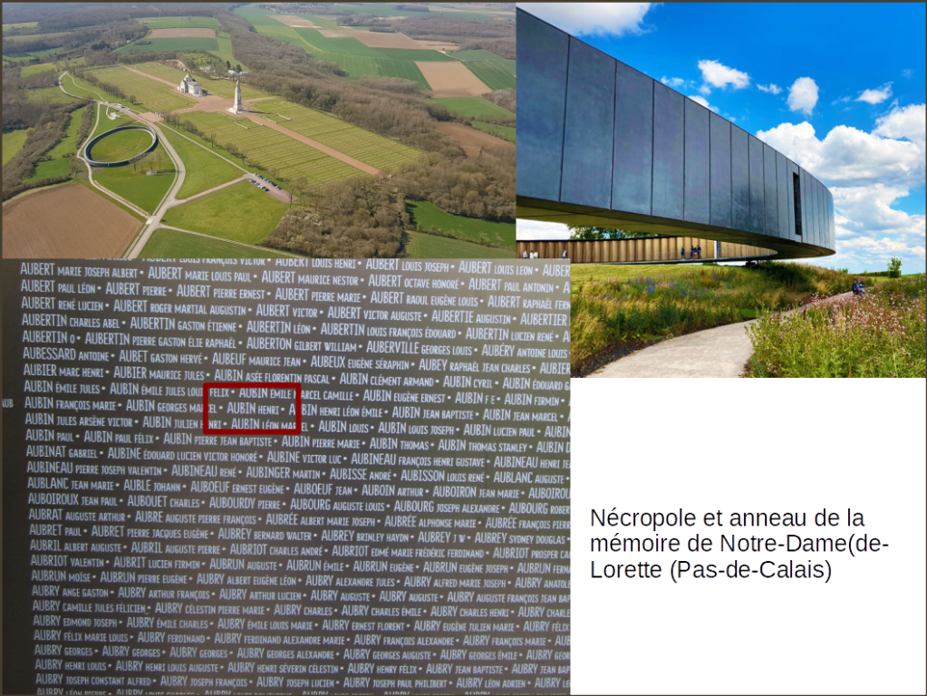 - L’anneau de la mémoire de Notre-Dame-de-Lorette. Ce monument commémore les soldats morts entre 1914 et 1918 dans les départements du Nord et du Pas-de-Calais.