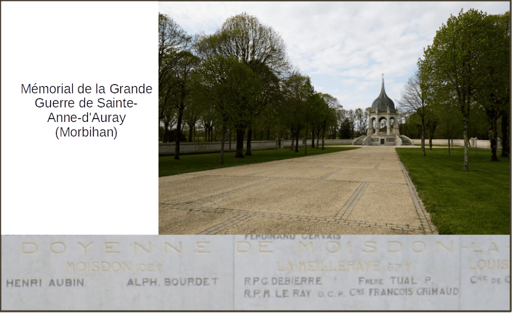 - le Mémorial de la Grande Guerre de Sainte-Anne-d’Auray. Il a été édifié pour garder le souvenir des « 240 000 Bretons victimes de la Première Guerre mondiale ».
