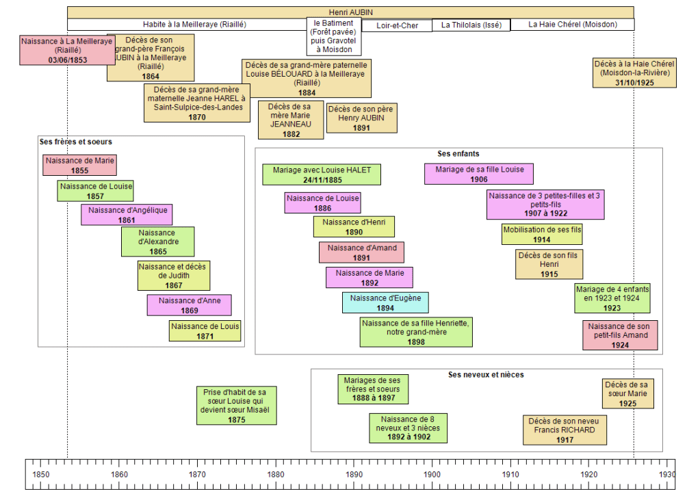 Le frise chronologique suivante (réalisée avec frisechronos.fr) mentionne les principaux événements familiaux de la vie d’Henri :