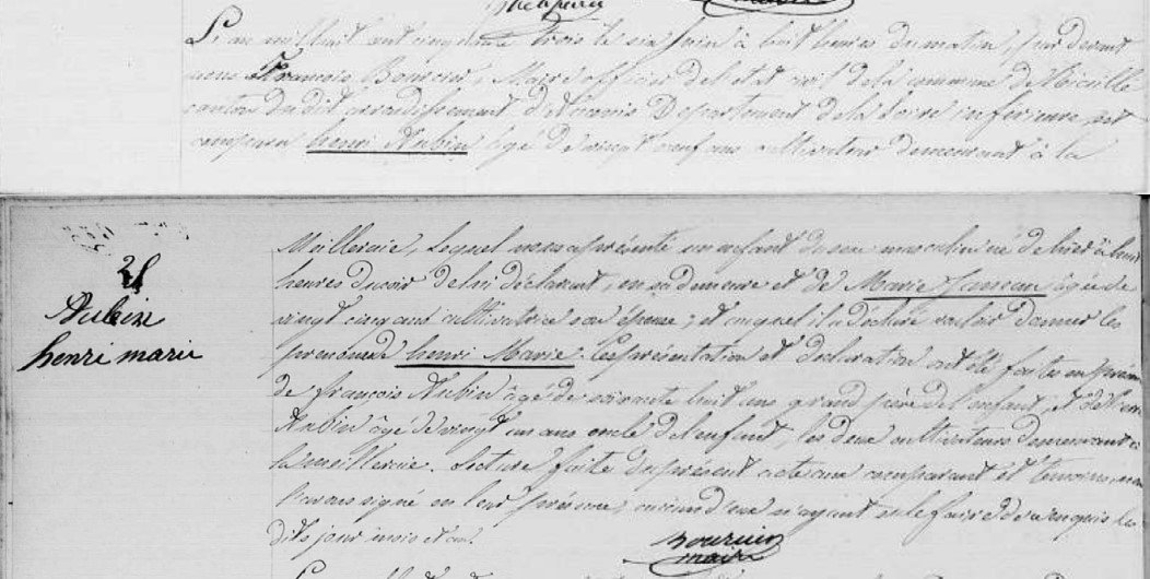 Son grand-père paternel, François AUBIN, décède en 1864. Henri a alors 11 ans. Jeanne Harel, sa grand-mère maternelle, décède en 1870 (Henri a 17 ans) et Louise BÉLOUARD, sa grand-mère paternelle en 1884 (Henri a 31 ans).