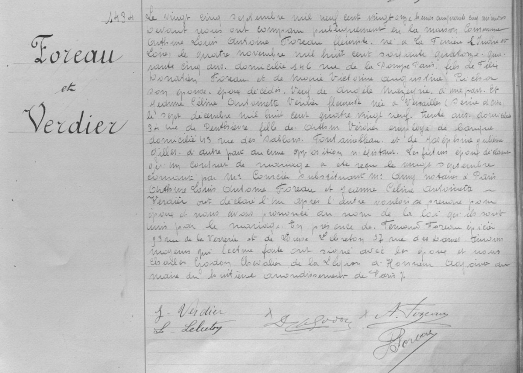 Joséphine Julienne GILLES est la mère de Jeanne VERDIER, arrière-arrière-arrière-grand-mère de mes enfants. Nous savons peu de chose d’elle : elle est citée dans l’acte de mariage de sa fille Jeanne VERDIER avec Arthur FOREAU en 1919, mais sans information la concernant. Elle n’y était probablement pas présente :