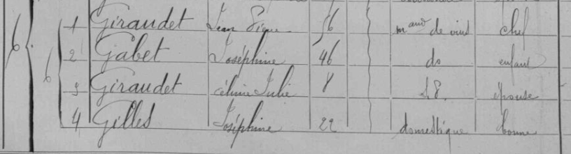 On perd ensuite la trace de Joséphine : ni elle, ni la famille Giraudet n’habitent à la même adresse au recensement de 1896. On retrouve la famille Giraudet à Bois-d’Arcy en 1901 où le père est garde-champêtre, mais ils n’ont plus de domestique.