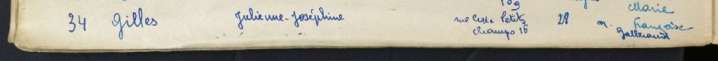 Théodorine s’est mariée deux fois : une première fois en 1912 avec Gustave GUILBERT, puis une seconde en 1923 avec Julien OUTRQUIN, son premier mari étant décédé. Dans l’acte de ce second mariage, il est indiquée que sa mère s’appelle Joséphine Julienne GILLES, est commerçante et habite 16 rue Croix des Petits Champs à Paris, la même adresse que la mère de Christian GALLAND ! La mère de Théodorine est donc la même que la mère de Christian, l’épouse GALLAND.