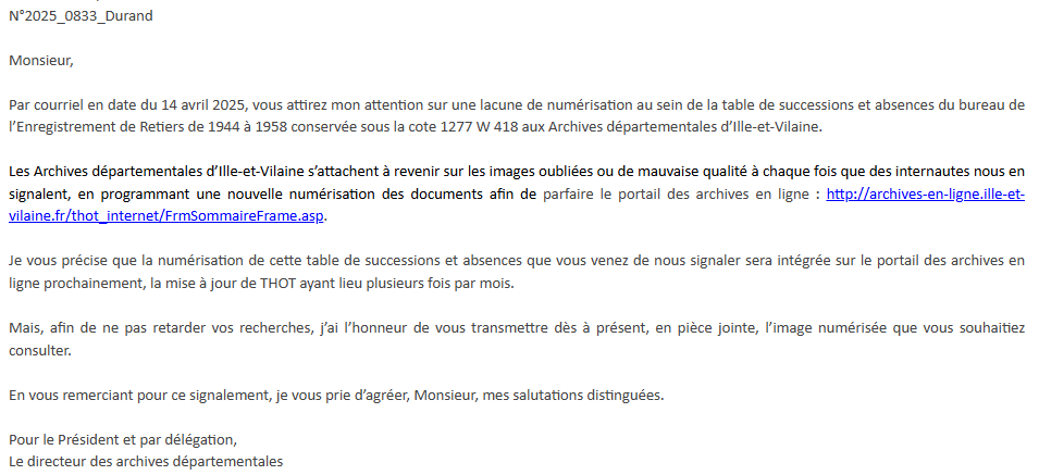 La réponse des archives est rapide et à la hauteur de mes attentes. Il manquait bien une page sur le site internet :