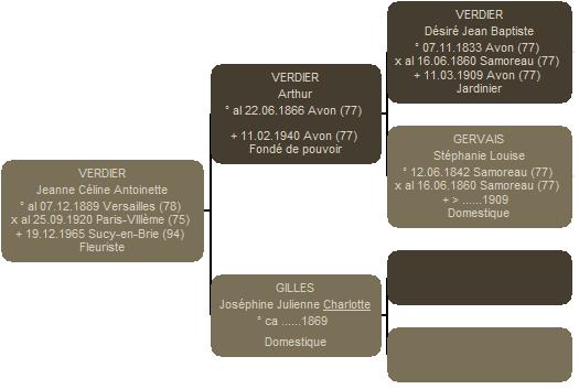 Jeanne VERDIER, arrière-arrière-grand-mère de mes enfants, née en 1889 à Versailles, est la fille d’Arthur VERDIER et de Joséphine Julienne GILLES. Nous connaissons les parents d’Arthur. Nous recherchons les parents de Joséphine :