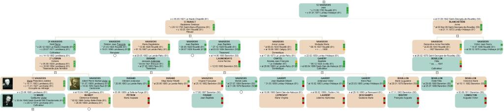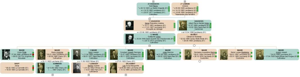 - en 1870, son demi-oncle paternel Victor VAUGEOIS, qu’elle connaissait peut-être moins puisqu’il vivait à Lonlay-l’Abbaye.