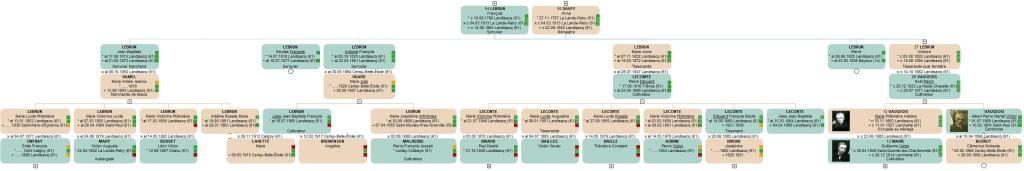 Voici sa famille paternelle, VAUGEOIS, (grands-parents, oncles et tantes, cousins et cousines, ainsi que la famille issue du second mariage de son grand-père):