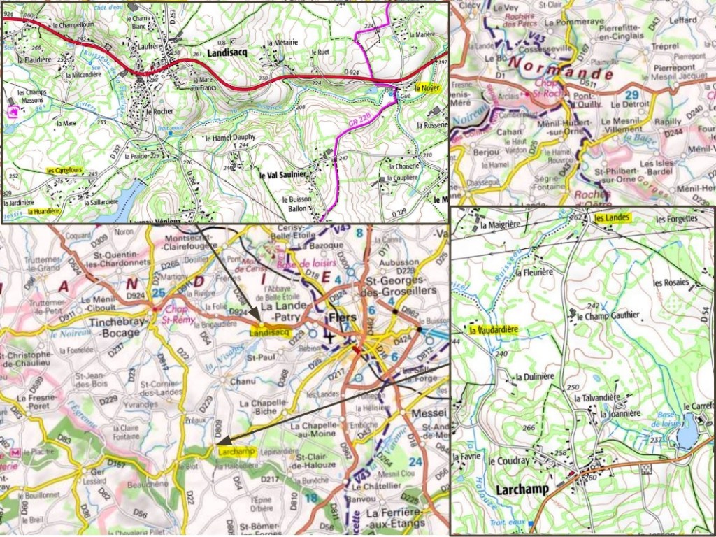 Voici une carte sur laquelle figurent les hameaux dans lesquels a vécu Maria, à Landisacq et Larchamp (qui sont distants d’un peu plus de 7 kilomètres à vol d’oiseau).